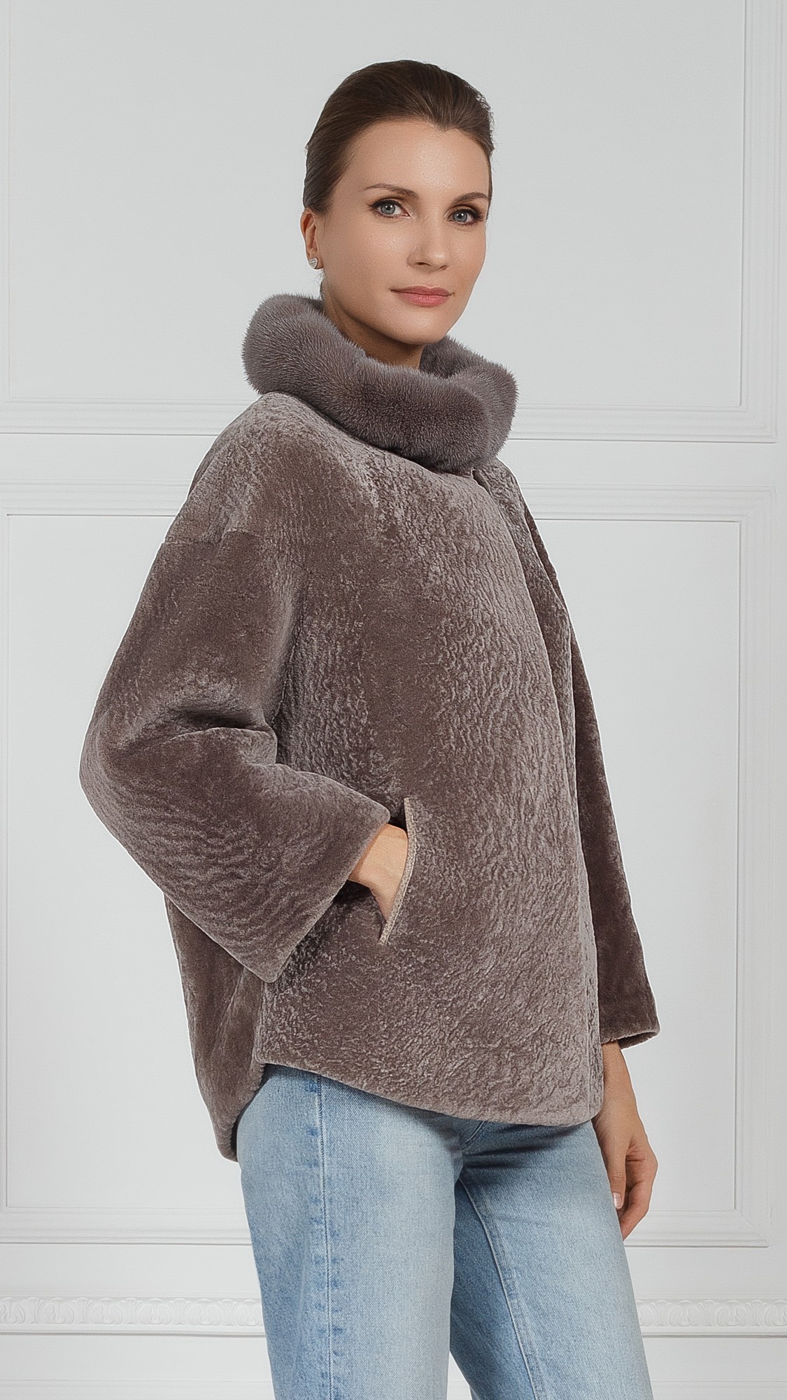 Куртка из овчины, отделка норка
